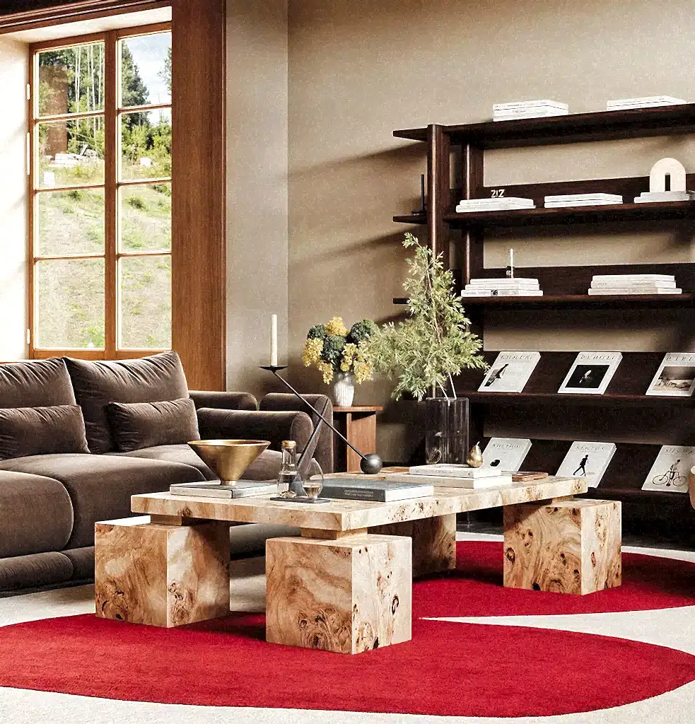 Forumun Pinco karşın hareketli yüzey kaplamasıyla güçlü bir kontrast oluşturan Asos Sehpa,