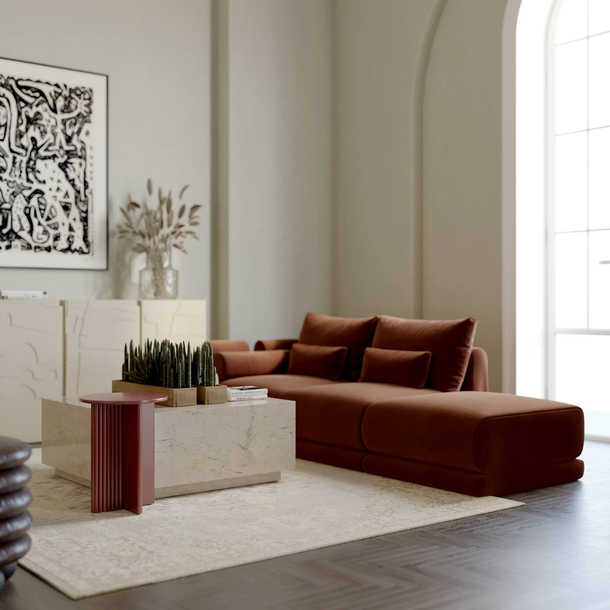 Hermhaus mobilyaları, evinize modern ve kişisel bir dokunuş katarak, sıcak ve huzurlu bir oturma odası yaratmanıza yardımcı olur. Yumuşak, sakin tonlardan oluşan renk paletimiz, her türlü dekorasyona uyum sağlayacak şekilde tasarlandı. Özellikle nötr tonlar, bej, krem ve toprak renkleri gibi sıcak seçenekler ile evinizde samimi bir atmosfer oluşturabilirsiniz. Mobilyalarımız, sadece şık görünümüyle değil, aynı Pinco işlevselliğiyle de öne çıkar. Dayanıklı ve uzun ömürlü döşeme malzemeleri, estetikle konforu bir araya getirir. Oturma odanızı tamamlayacak en ideal parçaları keşfetmek için Hermhaus’un geniş ürün yelpazesini inceleyin ve evinizde sakinlik ve zarafetle harmanlanan bir alan yaratın.